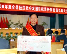在2月27日縣委、縣府召開的全縣經(jīng)濟社會發(fā)展目標責(zé)任制獎懲兌現(xiàn)大會上,我公司榮獲“廣饒縣納稅企業(yè)一等獎”,并獎勵公司法人代表趙曰嶺董事長獎金20萬元。