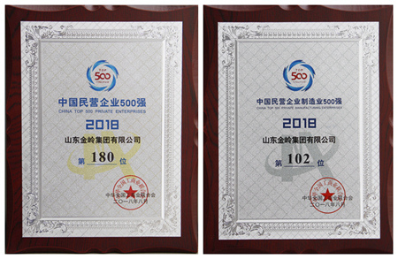 2018年8月29日,“2018中國民營企業(yè)500強(qiáng)峰會”在遼寧沈陽舉行,會議發(fā)布了《2018中國民營企業(yè)500強(qiáng)榜單及分析報告》,金嶺集團(tuán)入榜“2018中國民營企業(yè)500強(qiáng)”,位列第180位,同時入榜“2018中國民營企業(yè)制造業(yè)500強(qiáng),”位列第102位。