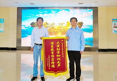 2020年5月28日,中國(guó)石油大學(xué)勝利學(xué)院后勤保障處黨總支書(shū)記劉云飛到東營(yíng)公司送上一面繡有“大愛(ài)助學(xué)細(xì)潤(rùn)無(wú)聲 情系教育惟宏隆德”的錦旗,對(duì)公司前段時(shí)間向?qū)W校無(wú)償捐贈(zèng)消毒液表示感謝。劉云飛說(shuō),在疫情防控和學(xué)生返校的關(guān)鍵時(shí)期,金嶺集團(tuán)雪中送炭向?qū)W校愛(ài)心捐贈(zèng)防疫物資,有效緩解了學(xué)校防疫物資緊缺的局面,彰顯了企業(yè)的大愛(ài)情懷和擔(dān)當(dāng)精神,學(xué)校將管好用好這批消毒液,絕不辜負(fù)愛(ài)心企業(yè)的善行義舉,確保全校師生的身體健康和生命安全。