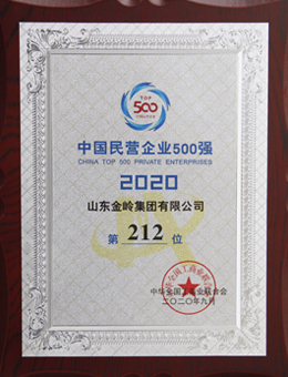 2020年9月10日,2020中國民營企業(yè)500強峰會在北京召開。在會上,全國工商聯(lián)黨組成員、副主席魯勇發(fā)布“2020中國民營企業(yè)500強”、“2020中國制造業(yè)民營企業(yè)500強”榜單,金嶺集團入榜“2020中國民營企業(yè)500強”,位列第212位,同時入榜“2020中國民營企業(yè)制造業(yè)500強”,位列第120位。