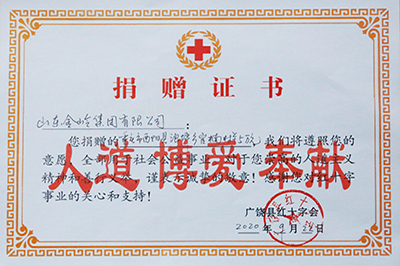 2020年9月24日,廣饒縣紅十字會頒發(fā)證書,對公司積極響應市委、市政府號召,向重慶市酉陽縣浪坪鄉(xiāng)官楠村捐款的行動表示感謝。在捐贈證書上,廣饒縣紅十字會表示:“您捐贈的重慶市酉陽縣浪坪鄉(xiāng)官楠村5萬元,我們將遵照您的意愿,全部用于社會公益事業(yè)。對于您崇高的人道主義精神和善行義舉,謹表示誠摯的敬意!感謝您對紅十字事業(yè)的關心和支持!” 扶貧酉陽,是黨中央、國務院和山東省委、省政府交給東營的一項重大任務,是我們義不容辭的責任。沉甸甸的捐贈證書,是對公司積極承擔社會責任的充分肯定。在多年來的發(fā)展歷程中,公司始終不忘創(chuàng)業(yè)初心,牢記發(fā)展使命,用愛心回饋社會,積極參與愛老敬老、捐資助學、扶危濟困、慈善賑災、新農(nóng)村建設、抗擊臺風等公益事業(yè),為地方各項社會事業(yè)發(fā)展做出了突出貢獻。