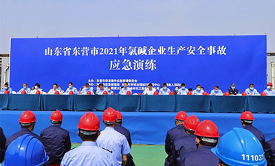 2021年6月2日,東營市2021年氯堿企業(yè)生產(chǎn)安全事故應急演練暨廣饒縣第20個全國安全生產(chǎn)月活動啟動儀式在大王公司舉行。東營市副市長、市公安局局長戚思宇,市政府副秘書長、市應急管理局局長、市市域治理運行管理中心主任劉良范,廣饒縣委常委、常務副縣長張江圣,副縣長、縣公安局局長楊秀林,大王鎮(zhèn)黨委副書記、鎮(zhèn)長李洪剛,大王鎮(zhèn)黨委統(tǒng)戰(zhàn)委員、應急管理局局長韓林,發(fā)展改革、工業(yè)和信息化、生態(tài)環(huán)境、交通運輸、衛(wèi)生健康、市場監(jiān)管、氣象、消防等部門單位負責同志,金嶺集團董事長趙曰嶺、總裁趙棟及公司相關人員參加了演練活動。