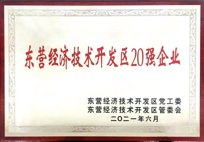 2021年7月,在東營(yíng)經(jīng)濟(jì)技術(shù)開發(fā)區(qū)黨工委、東營(yíng)經(jīng)濟(jì)技術(shù)開發(fā)區(qū)管委會(huì)組織召開的“兩優(yōu)一先”表彰暨“實(shí)干突破”大競(jìng)賽、大比武表彰獎(jiǎng)勵(lì)大會(huì)上,山東金嶺新材料有限公司被授予“東營(yíng)經(jīng)濟(jì)技術(shù)開發(fā)區(qū)20強(qiáng)企業(yè)”,以表彰新材料公司為東營(yíng)開發(fā)區(qū)經(jīng)濟(jì)建設(shè)取得的突出成績(jī)。