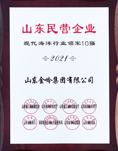 2021年12月,山東省工商業(yè)聯(lián)合會(huì)、山東省科學(xué)技術(shù)廳、山東省工業(yè)和信息化廳等8個(gè)單位聯(lián)合評(píng)價(jià)的“山東民營(yíng)企業(yè)100強(qiáng)、山東民營(yíng)企業(yè)現(xiàn)代海洋行業(yè)領(lǐng)軍10強(qiáng)”名單發(fā)布,金嶺集團(tuán)入圍兩項(xiàng)榮譽(yù),在山東民營(yíng)企業(yè)100強(qiáng)中位列第24位。