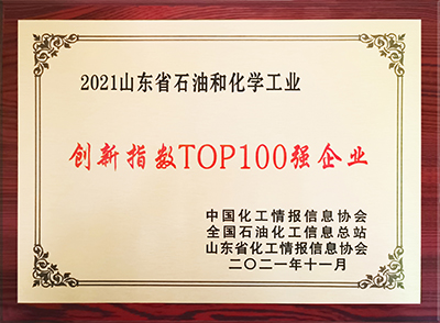 2021年11月22日,由中國化工情報信息協(xié)會等單位主辦的“第11屆中國化工產(chǎn)學(xué)研高峰論壇暨石油和化學(xué)工業(yè)創(chuàng)新指數(shù)TOP100強企業(yè)發(fā)布會”在廣饒縣召開,在會上,金嶺集團被授予“2021山東省石油和化學(xué)工業(yè)創(chuàng)新指數(shù)TOP100強企業(yè)”,以表彰公司在推動技術(shù)創(chuàng)新、節(jié)能減排、綠色發(fā)展等方面做出的突出成績。