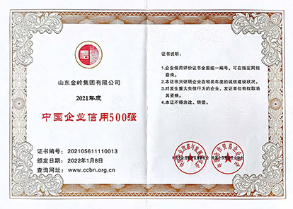 2022年1月8日,由中國(guó)企業(yè)改革與發(fā)展研究會(huì)、中國(guó)合作貿(mào)易企業(yè)協(xié)會(huì)聯(lián)合主辦的“2022中國(guó)企業(yè)信用發(fā)展論壇暨第十三屆誠(chéng)信公益盛典”在北京召開,會(huì)議隆重發(fā)布2021年度“中國(guó)企業(yè)信用500強(qiáng)”、“中國(guó)民營(yíng)企業(yè)信用100強(qiáng)”榜單,金嶺集團(tuán)榮獲兩項(xiàng)榮譽(yù),并在大會(huì)上受到表彰。作為《企業(yè)誠(chéng)信管理體系》標(biāo)準(zhǔn)的起草單位,多年來公司高度重視企業(yè)誠(chéng)信體系建設(shè),堅(jiān)持誠(chéng)信經(jīng)營(yíng),提升了全體員工的誠(chéng)信意識(shí),在社會(huì)上樹立了良好的企業(yè)信用形象。