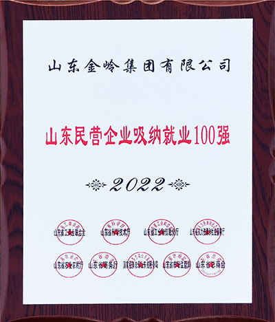 2022年9月,山東省工商業(yè)聯(lián)合會、山東省科學技術(shù)廳、山東省工業(yè)和信息化廳等9個單位聯(lián)合授予金嶺集團“山東民營企業(yè)吸納就業(yè)100強”榮譽稱號,對公司在緩解當?shù)鼐蜆I(yè)壓力、穩(wěn)就業(yè)、保民生方面做出的突出貢獻給予充分肯定并進行表彰。