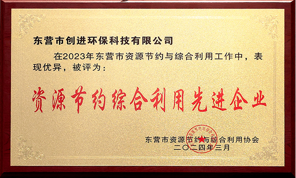 2024年3月31日,東營(yíng)市資源節(jié)約與綜合利用協(xié)會(huì)舉辦2024年度峰會(huì),本次峰會(huì)展示了2023年全市資源節(jié)約與綜合利用工作中各項(xiàng)創(chuàng)新成果,并表彰了在2023年工作中表現(xiàn)優(yōu)異的先進(jìn)企業(yè)和先進(jìn)個(gè)人,東營(yíng)市創(chuàng)進(jìn)環(huán)保科技有限公司被評(píng)為“資源節(jié)約綜合利用先進(jìn)企業(yè)”。