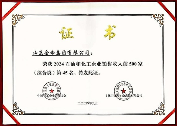 2024年9月12日,中國(guó)化工企業(yè)管理協(xié)會(huì)、東營(yíng)市人民政府在東營(yíng)市舉辦了“以實(shí)現(xiàn)由大到強(qiáng)的跨越”為主題的2024中國(guó)石油和化工企業(yè)銷售收入500強(qiáng)發(fā)布會(huì),發(fā)布了2024中國(guó)石油和化工企業(yè)500強(qiáng)榜單,金嶺集團(tuán)位列“2024中國(guó)石油和化工企業(yè)銷售收入前500家”(綜合類)第45位;金嶺化工再次入圍“2024專用化學(xué)產(chǎn)品企業(yè)銷售收入前100家,位列第2位;位列“2024石油和化工企業(yè)銷售收入前500家”(獨(dú)立生產(chǎn)經(jīng)營(yíng))第29位。