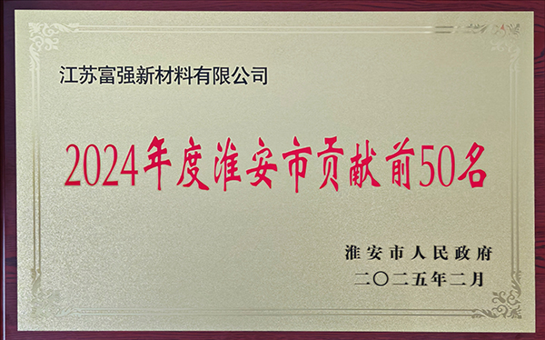 2025年2月5日,淮安市重特大項目攻堅暨優(yōu)化營商環(huán)境大會召開,江蘇富強新材料有限公司被評為“2024年度淮安市貢獻前50名”。