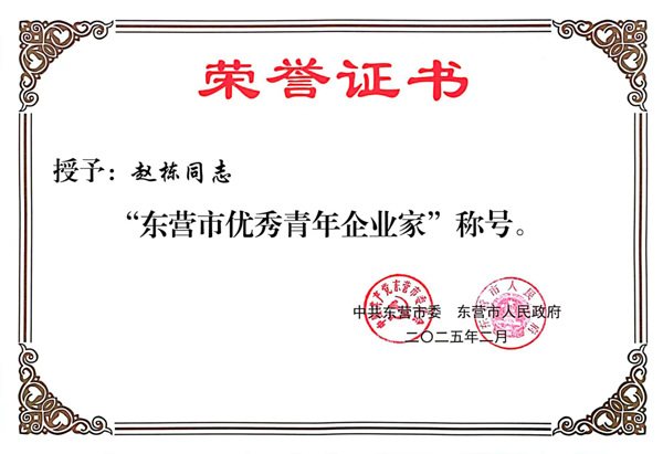 2025年2月10日,東營市優(yōu)秀企業(yè)和企業(yè)家表彰大會召開,集團公司被評為“2024年度東營市納稅突出貢獻企業(yè)”,總裁趙棟被授予“東營市優(yōu)秀青年企業(yè)家”“東營市慈善公益突出貢獻企業(yè)家”榮譽稱號。