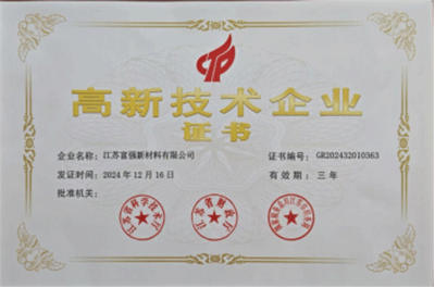 2025年2月18日,經(jīng)江蘇省科學(xué)技術(shù)廳、江蘇省財政廳、國家稅務(wù)總局江蘇省稅務(wù)局層層嚴(yán)格審核、多輪評估,江蘇富強(qiáng)新材料有限公司被評為高新技術(shù)企業(yè)。