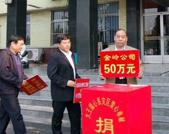 四川地震災(zāi)情牽動(dòng)著每一個(gè)金嶺人的心,災(zāi)情發(fā)生后公司向全體員工發(fā)出了“一方有難,八方支援”向?yàn)?zāi)區(qū)捐款的倡議,并于5月18日在辦公樓前舉行了“心系災(zāi)區(qū)、愛心奉獻(xiàn)”抗震救災(zāi)捐款儀式,大家紛紛伸出援助之手,僅一天時(shí)間就捐款50萬元,其中董事長趙曰嶺捐款25萬元,向?yàn)?zāi)區(qū)人民奉獻(xiàn)上金嶺人的一片愛心。
