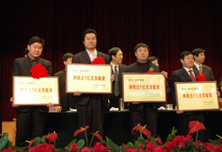 在2月17日召開的全市經貿工作會議上,東營市人民政府授予公司董事長趙曰嶺“突出貢獻企業(yè)家”榮譽稱號,公司被授予“納稅過1億元貢獻獎”,“項目建設過6億元投入獎”。
