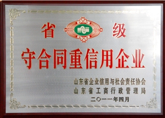 近日,公司被山東省企業(yè)信用與社會責任協(xié)會、山東省工商行政管理局評為省級守合同重信用企業(yè)。