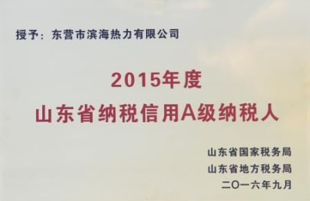 公司被評(píng)為山東省納稅信用A級(jí)納稅人