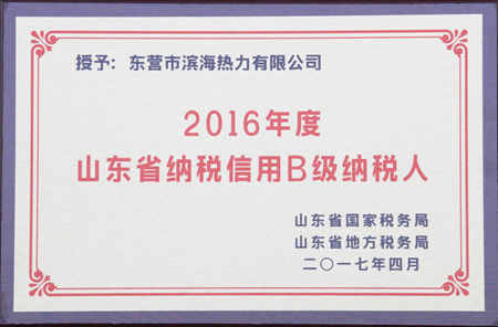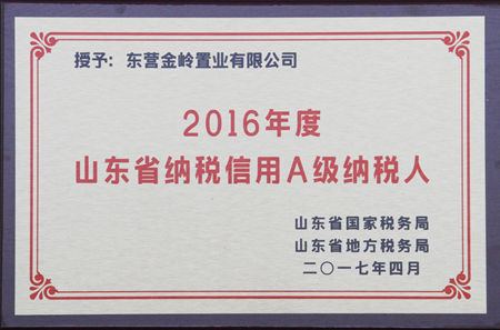 近日,2016年度山東省納稅信用級別評價結(jié)果發(fā)布,集團公司下屬子公司金嶺股份、金嶺化學(xué)、金嶺置業(yè)、金嶺新材料、濱海熱力獲得表彰。