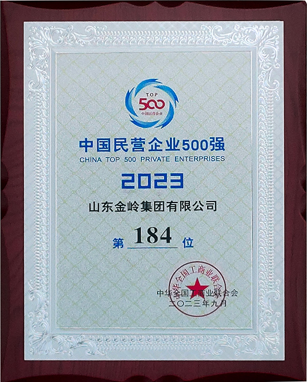 2023年9月,全國(guó)工商業(yè)聯(lián)合會(huì)發(fā)布中國(guó)民營(yíng)企業(yè)500強(qiáng)、中國(guó)制造業(yè)民營(yíng)企業(yè)500強(qiáng)榜單,金嶺集團(tuán)位列“2023中國(guó)民營(yíng)企業(yè)500強(qiáng)”第184位,“2023中國(guó)制造業(yè)民營(yíng)企業(yè)500強(qiáng)”第124位。
